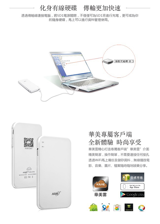 Hame SD1 Wi-Fi隨身雲隨身NAS + WiFi儲存分享器"