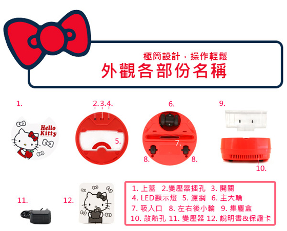 附件:集塵盒、濾網、變壓器、保證卡、說明書