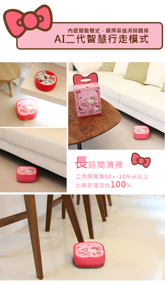 【Vbot x Hello Kitty 】限量二代鋰電迷你智慧掃地機(極淨濾網型)